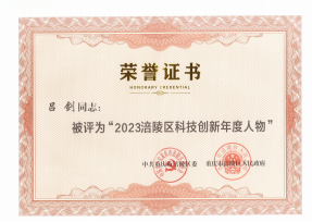 公司董事長呂劍被評為2023涪陵區(qū)科技創(chuàng)新年度人物