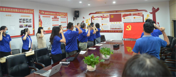 會議首先進入新黨員入黨宣誓環節,所有老黨員也一起高舉右手,面對鮮紅的黨旗,激情澎湃的重溫了神圣莊嚴的入黨誓詞。